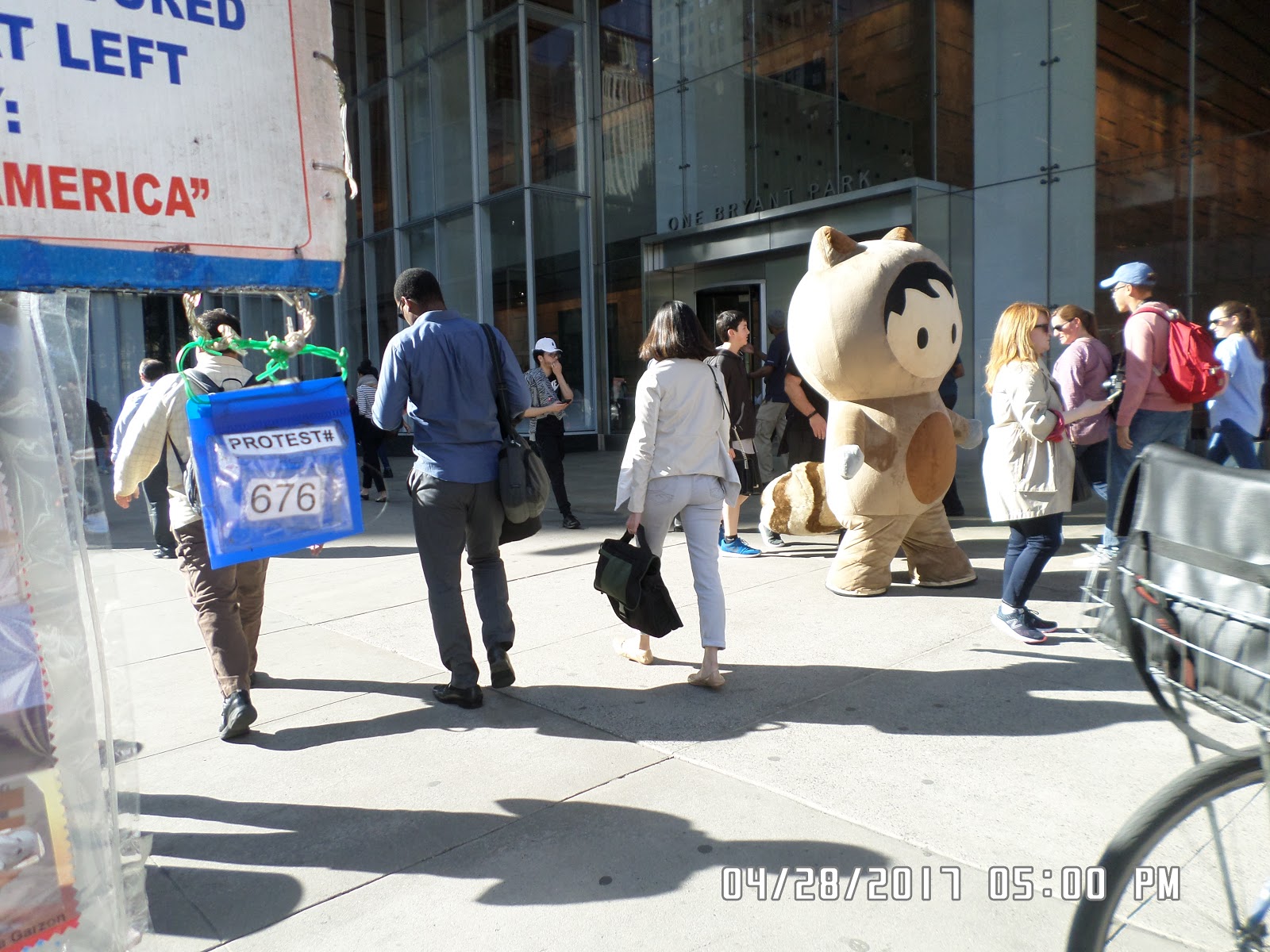 York, Junio 5, 2017PROTESTA # 699… HOY MI PROTESTA ESTUVO COMPLACIDA CON PEQUEÑOS EVENTOS QUE HICIERON MI DÍA... UN RINCÓN DE LA ZONA SELECTIVA DEL BANCO DE AMÉRICA DESPERTÓ MI INSPIRACIÓN Y PUDE DISTRAER MI MISERIA POR UN RATO... UNA ILUSIÓN PUSO EN MI MENTE UN SUEÑO IMPOSIBLE